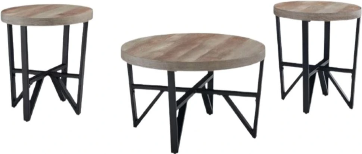 Beautiful to behold, this table set is loaded with high style and convenience. Thick tabletops with the look of reclaimed lumber sport a light natural-looking finish, offering a dramatic contrast to the black frame. Stretch your style and enrich your living space with these urban contemporary tables.Read More