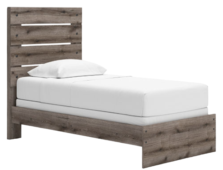 Combining a casual aesthetic with functional flair, this twin panel bed suits styles from rustic to industrial. The headboard's slatted panel design has an easy-going character that's sure to please. Dressed in a chic weathered gray hue, it brings a charmingly curated vibe to bedtime.Read More
