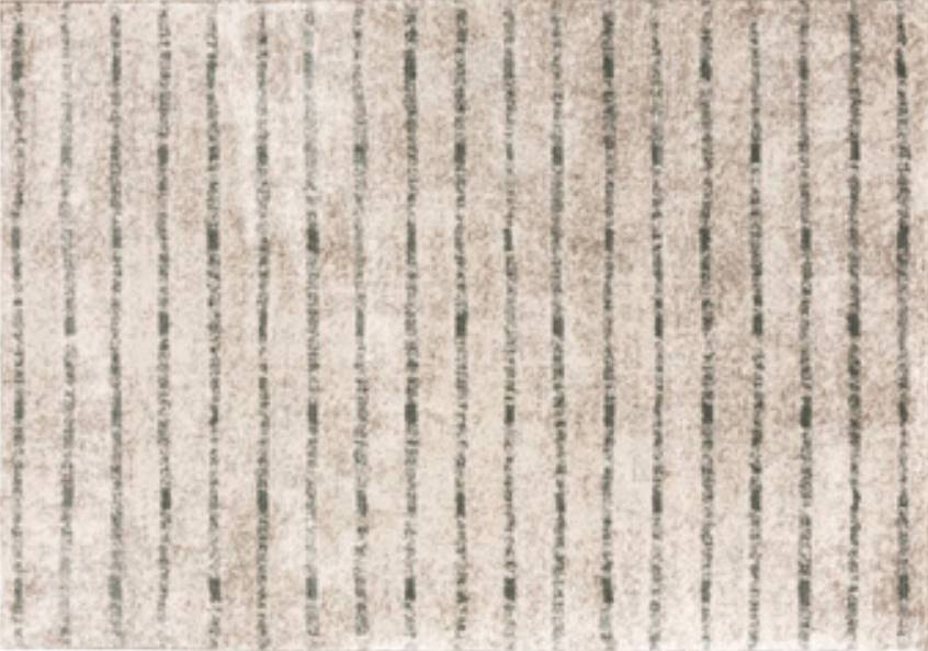 Machine woven shag, stripe design in cream and sage green