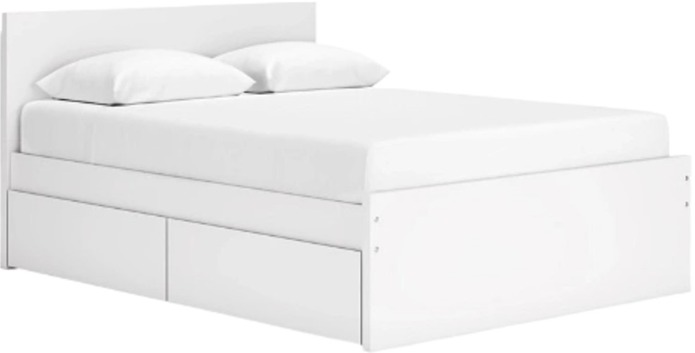 Includes headboard, panels, rails, roll slats and 2 side storage drawers