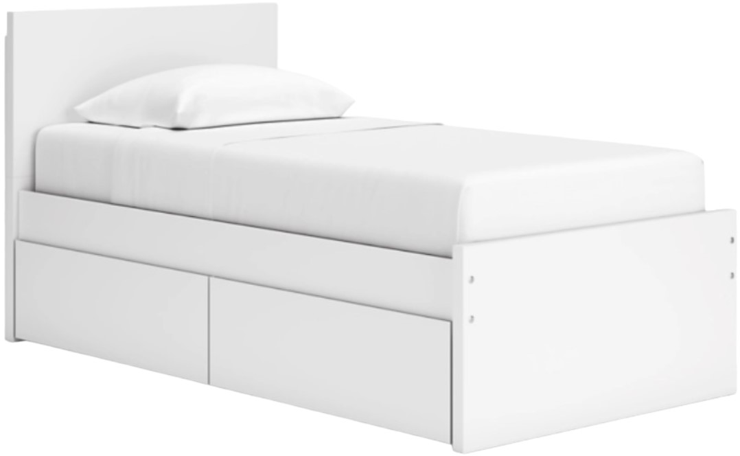 Includes headboard, panels, rails, roll slats and 2 side storage drawers