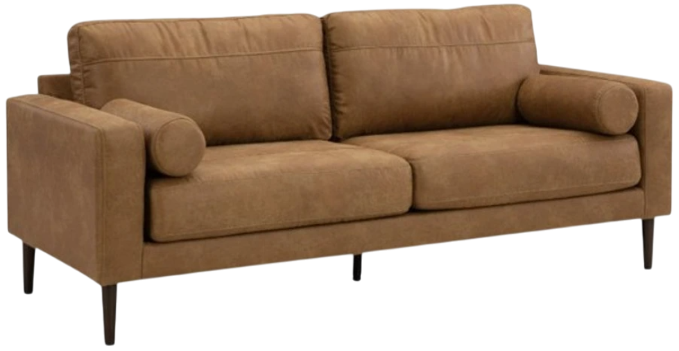 Small-scale style, tailored to perfection. This sofa echoes retro aesthetics with warm caramel faux leather, while its ultra-linear silhouette incorporates a contemporary edge. Versatile in form and function, the seat suits styles from modern boho to transitional.Read More