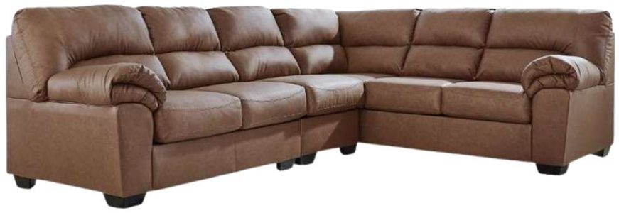 Modern comfort never looked so good. Sporting supremely soft yet durable cushions accented with high-fashion jumbo stitching, this stunning sectional is the ultimate choice in comfortably cool, contemporary style. Its caramel-hued faux leather indulges with an upscale feel and wows like the real thing.Read More