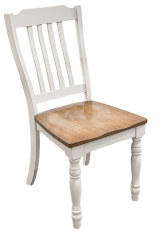 Stylish two-tone country look with contoured seats and slat back design
