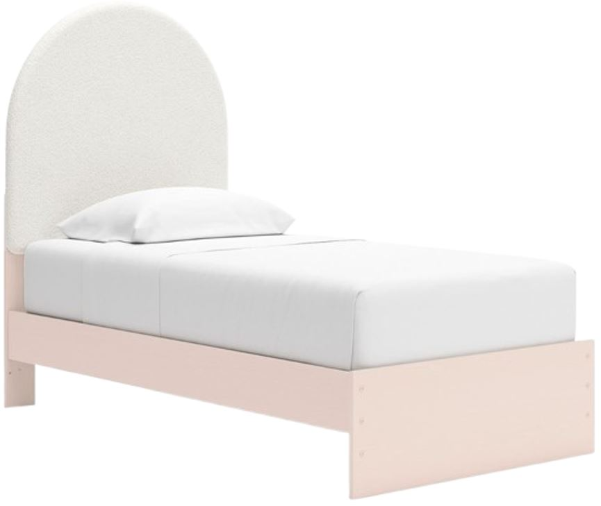 Pretty in pink. This twin upholstered panel bed with storage keeps the spirit of your home’s modern aesthetic while suiting all your young one’s needs. Its cozy-cute upholstery and subtle blush finish bring a playful, charming vibe to bedtime. Made for her and styled for you, it’s a lovely addition to a beautifully chic child’s bedroom.Read More