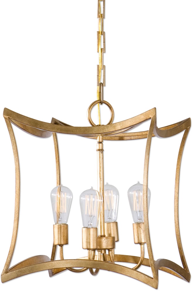 Elegant Square Open Frame Pendant In A Rich Gold Leaf Finish. Includes 4-60 Watt ST58 Antique Style Bulbs.Read More