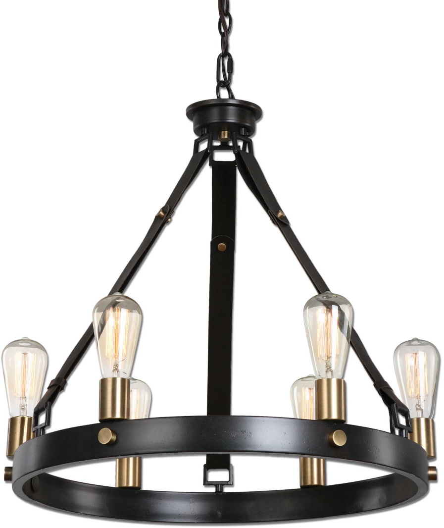 Combination Of Dark Antique Bronze & Weathered Bronze With Leather Straps. Includes Antique Style 6-60 Watt BT58 Bulbs.Read More